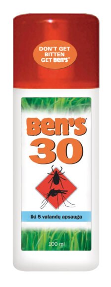 Ben’s 30 (100 ml) sudėtyje yra 30 % DEET, todėl tai puikus pasirinkimas žygiams, stovyklavimui ar kitai veiklai lauke. Tinka tiek vietovėms su nedideliu, tiek su dideliu vabzdžių skaičiumi, taip pat kai yra erkių pavojus.